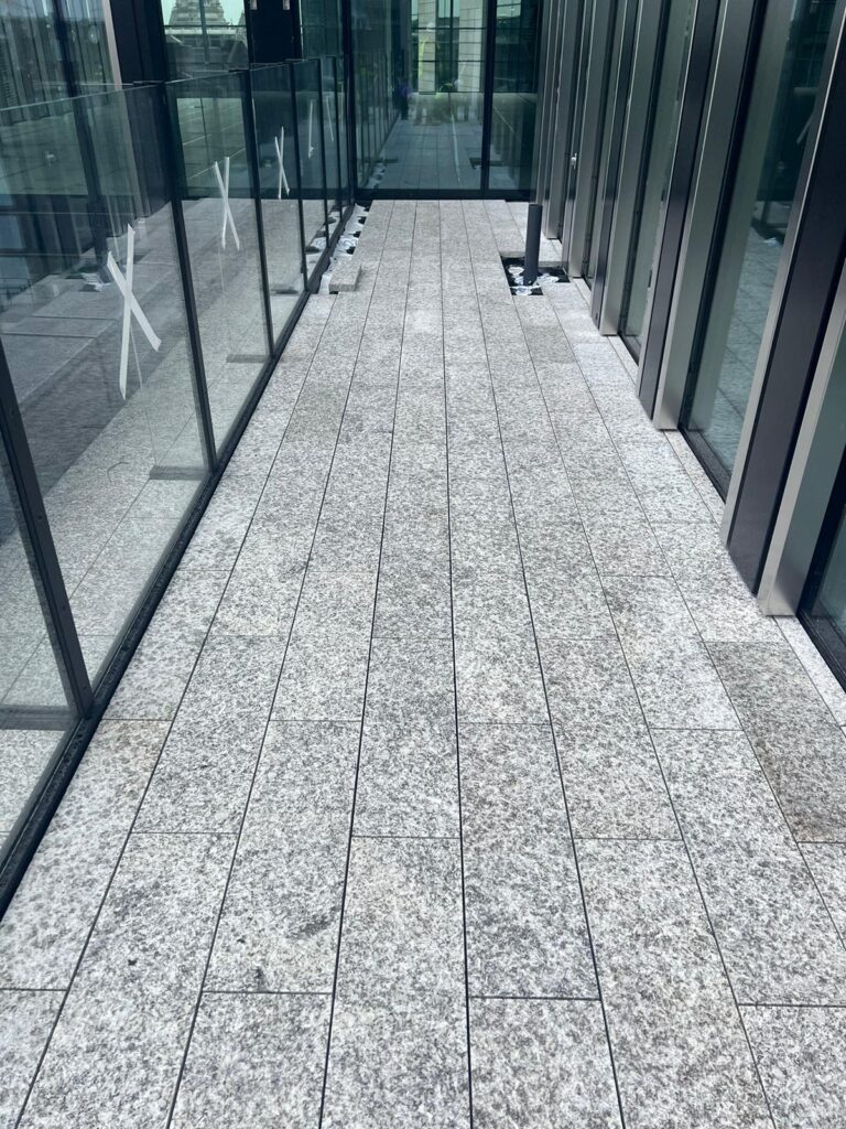 Multiple roof levels, a large footprint and an extensive number of terraces presented considerable technical and logistical hurdles. These included significant variations in terrace layouts and roofing zones, the need for phased installation with constant area transitions and strict environmental, safety and scheduling requirements.
